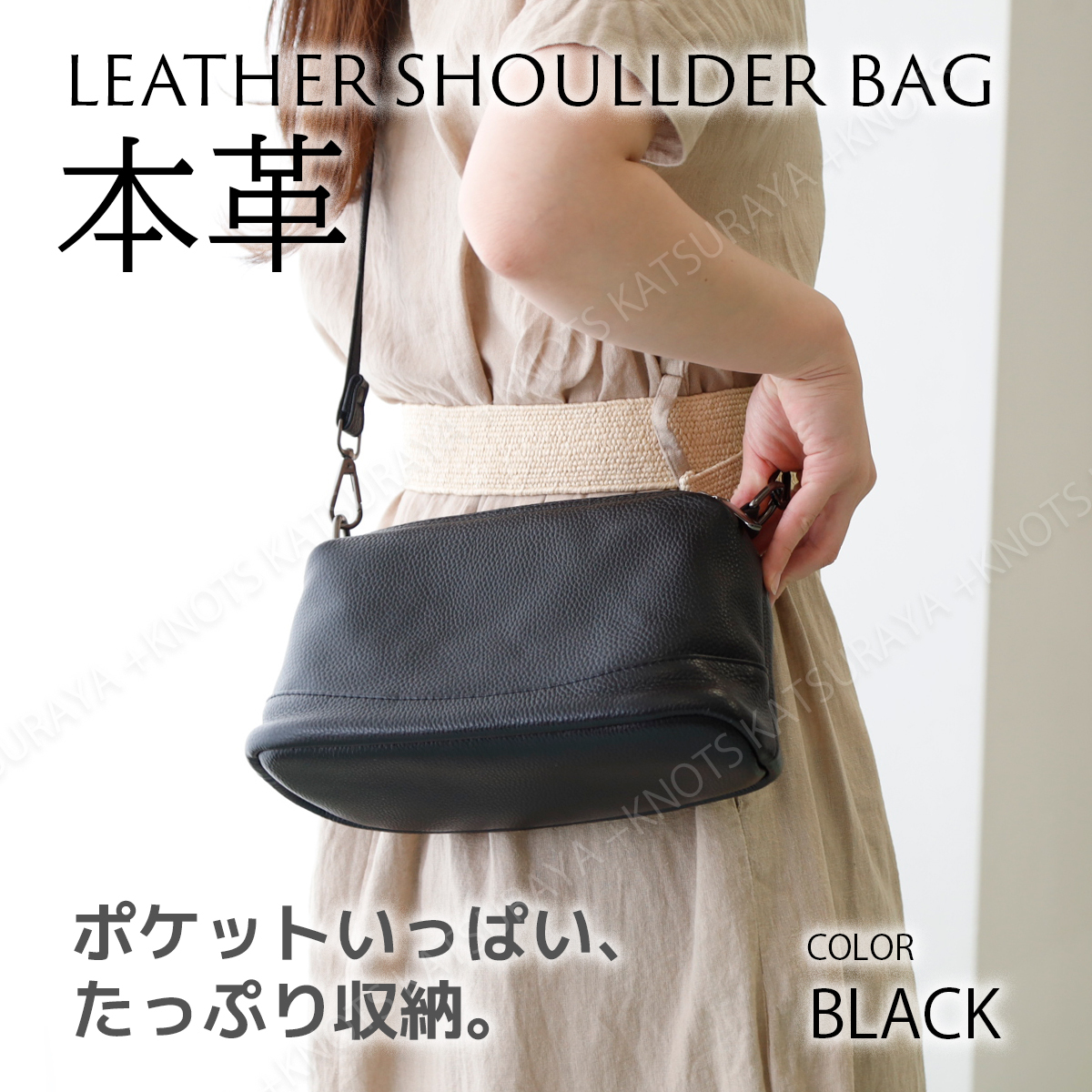 > ミニショルダーバッグ スマホポーチ 本革★ブラック黒★牛革 レザー ミニバッグ 肩掛け レディース スマホ ショルダー 斜め掛けa386