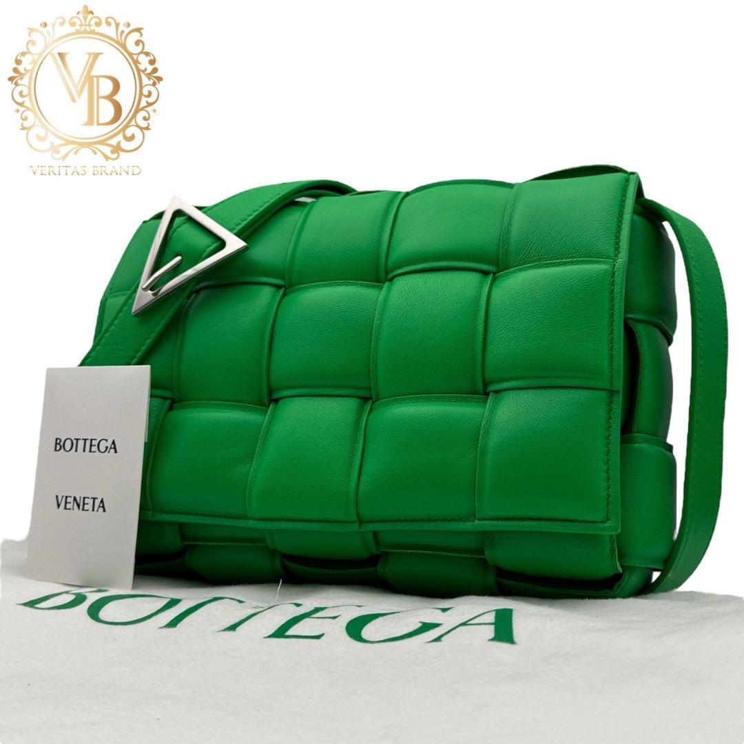- 【未使用に近い】BOTTEGA VENETA ボッテガヴェネタ パデッドカセット ショルダーバッグ パラキート グリーン 緑 レザー レディース