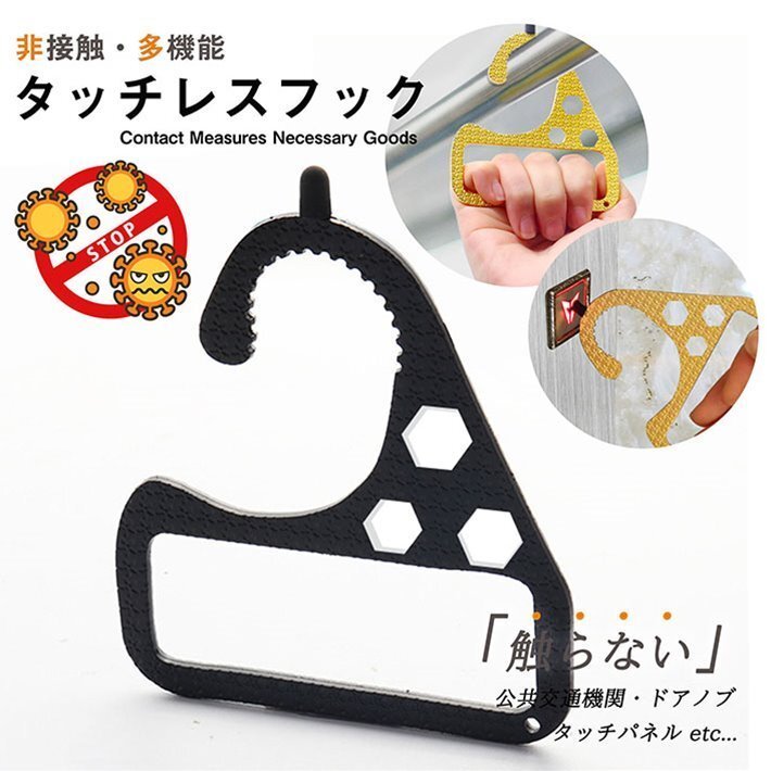 - 多機能 ドアオープナー フック アシスト つり革 触らない ボタン押し ウィルス対策 接触防止 ハンドルフック 7990243 クローム 新品
