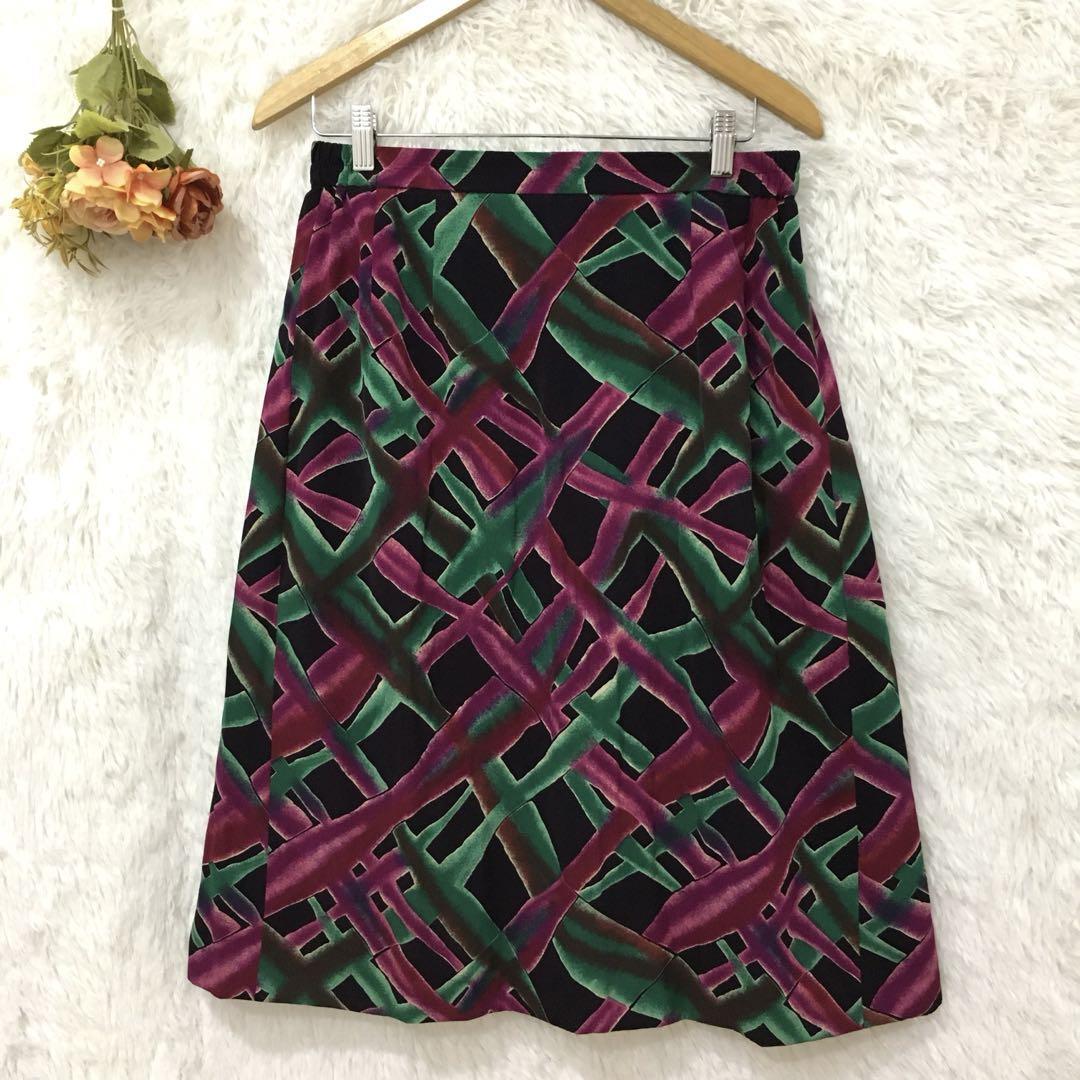 - ★OLEART★オレアート 総柄 膝丈 スカート 【XL】 日本製 古着 レトロ
