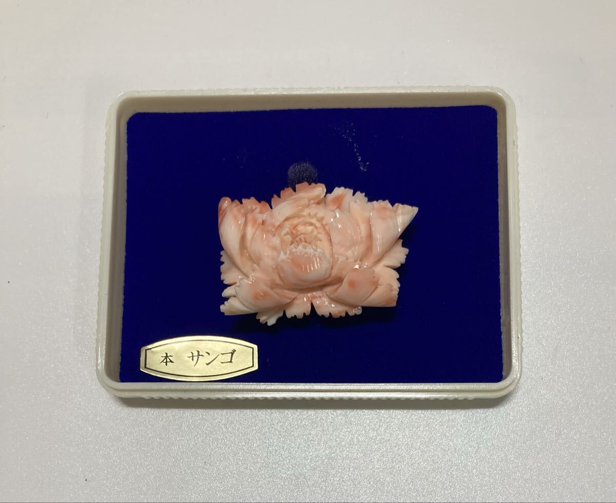 - 3860 珊瑚 サンゴ ブローチ 帯留め 2WAY 和装小物 彫刻 コーラル 本珊瑚