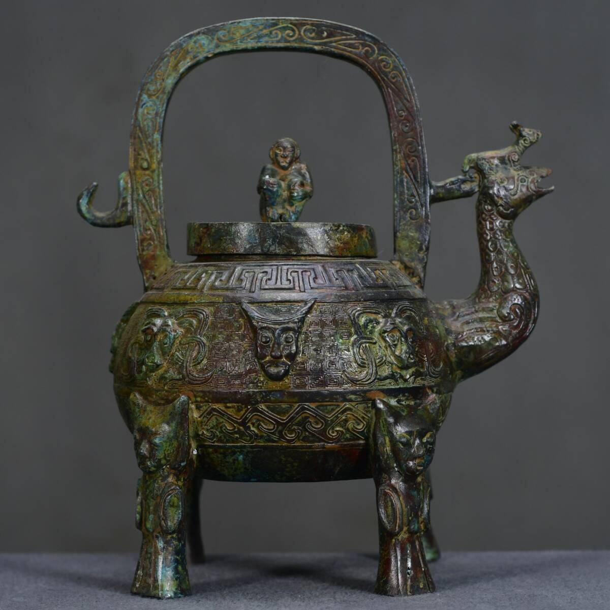 - 館蔵 春秋 青銅器 鳳頭三足 提梁壺 古董品 時代物 賞物 貴重 稀少珍品 中国古美術 古美味 蔵出