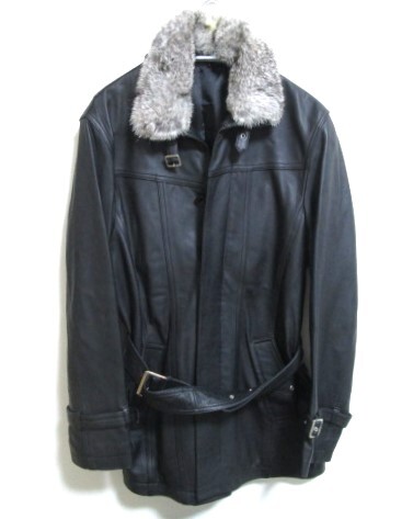 - タカキュー TAKA-Q レザージャケット☆ラビットファー 羊革 ブラック