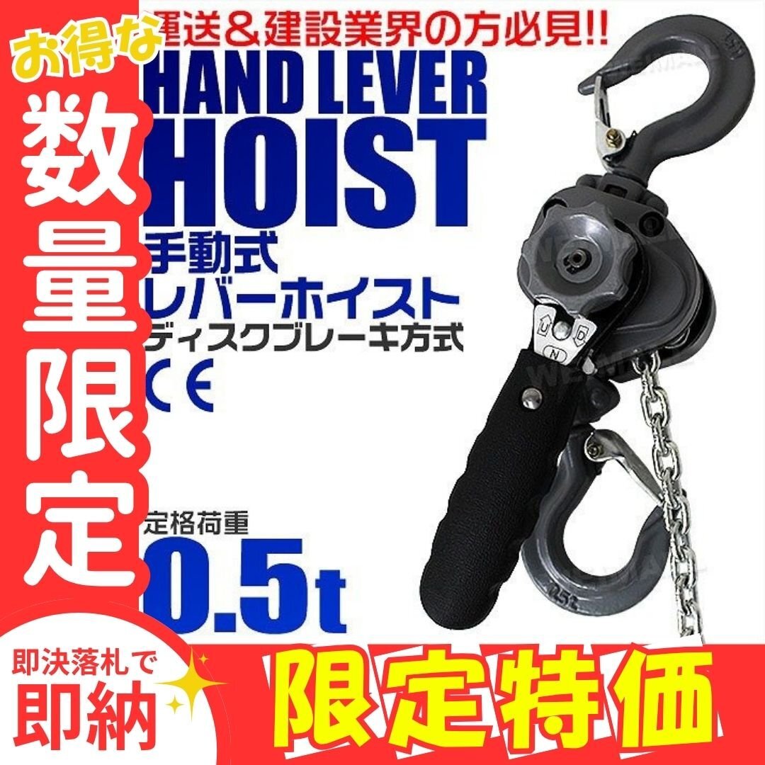 > 【限定セール】レバーホイスト 定格荷重 0.5t 500kg チェーンホイスト 荷締機 CE TUV認証済 玉掛 牽引 ジャッキ チェーン ブロック