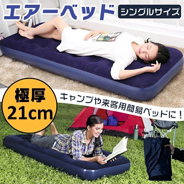 - 1円 エアーベッド キャンプ 車中泊 簡易ベッド 防災グッズ アウトドア 極厚 ポンプ付き シングルサイズ 一人用 テント レジャー ad219