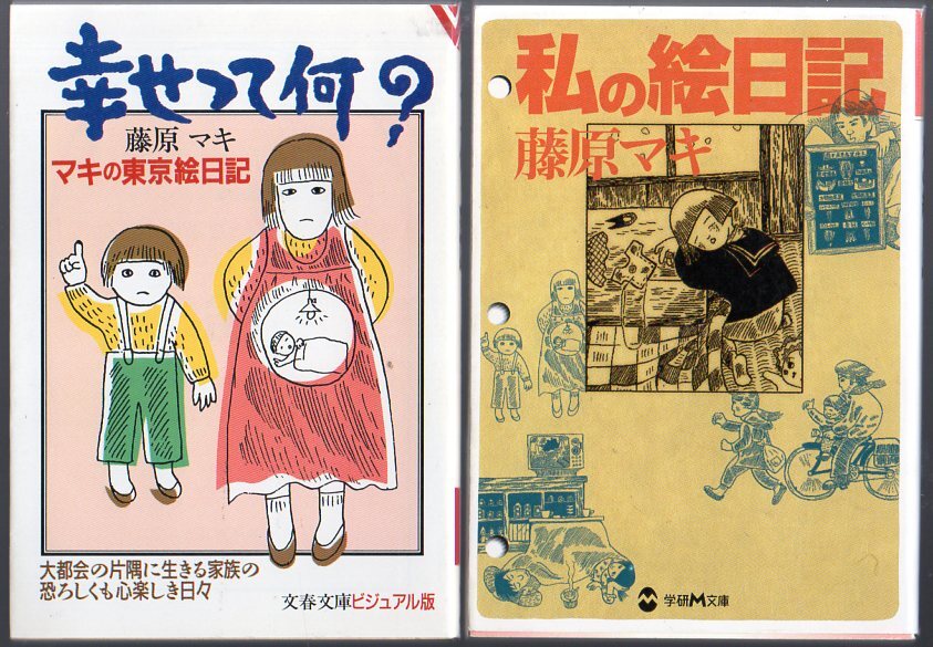 - 藤原マキ ( つげ義春 夫人) 2冊セットです!『 幸せって何? マキの東京絵日記 』(文春文庫ビジュアル版)&『 私の絵日記 』(学研M文庫)