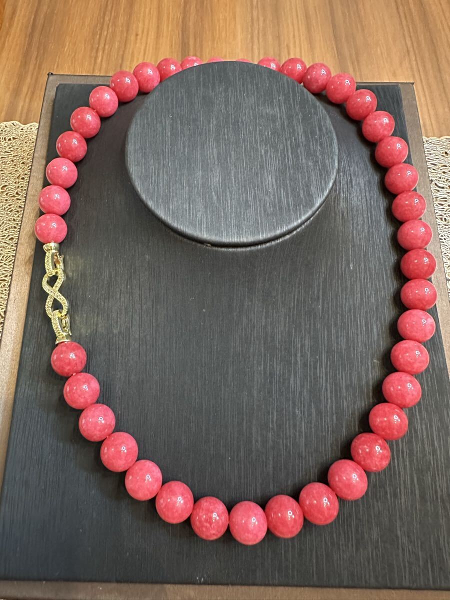- V-1025 赤紋石 インカローズ ネックレス 恋愛運 大玉12mm