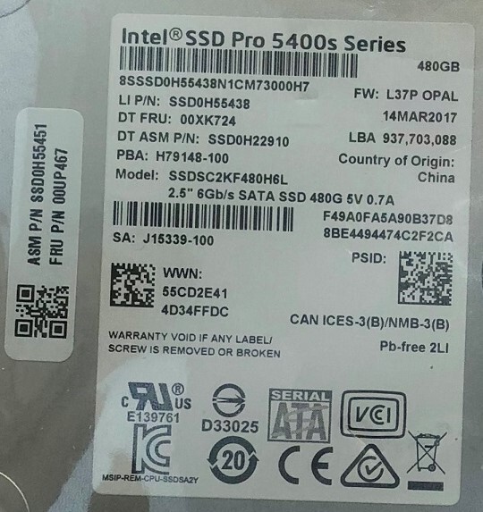 - SSD 新品 Lenovo純正 2.5inch 7mm 480GB 00UP467 SSDSC2KF480H6L 国内発送