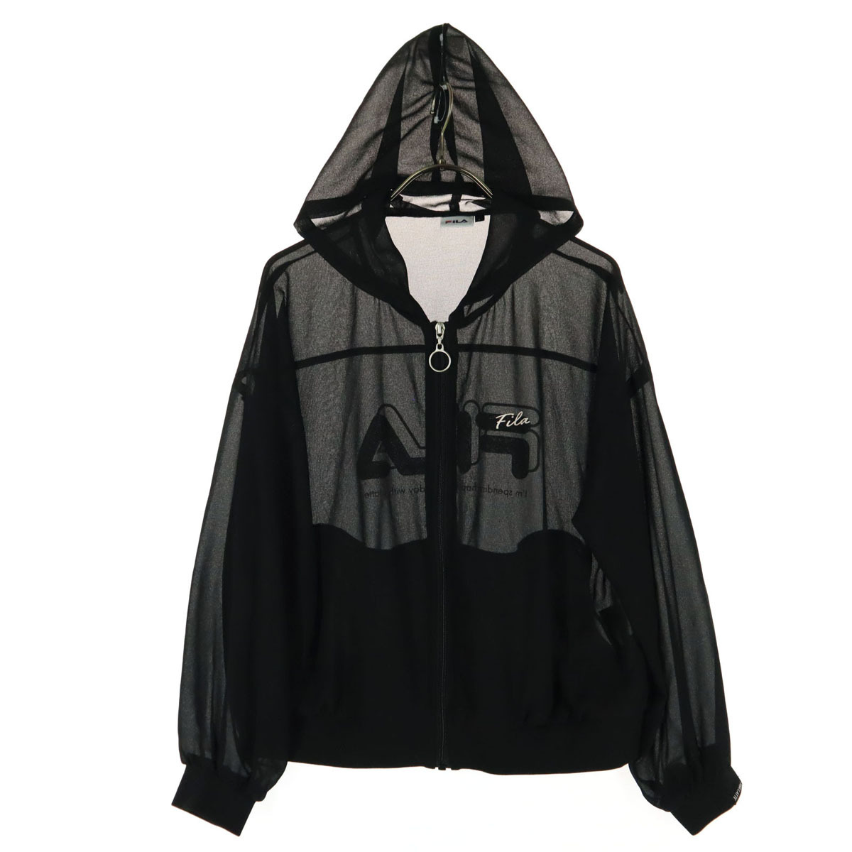 美品 FILA フィラ 英字 長袖 メッシュ素材 ジップパーカー L ブラック レディース拍卖