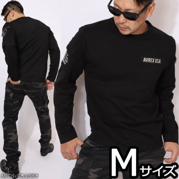 - AVIREX アビレックス ファティーグ 長袖 Tシャツ ブラック【Mサイズ 】6113448 クルーネック ポケット ミリタリー