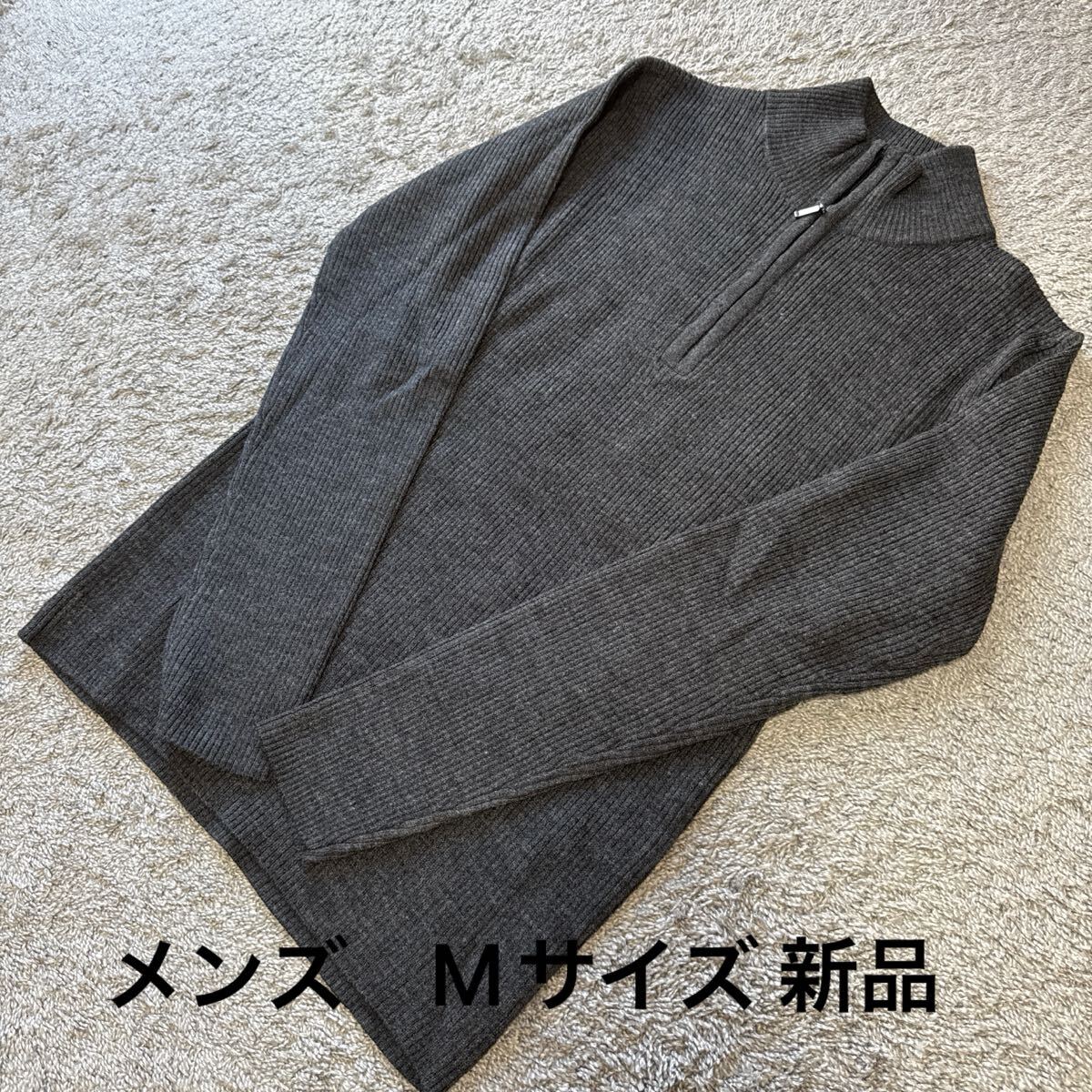 - メンズ ネックジップ長袖リブニットチャコールグレーM★ゆうパケット配送可能★新品18