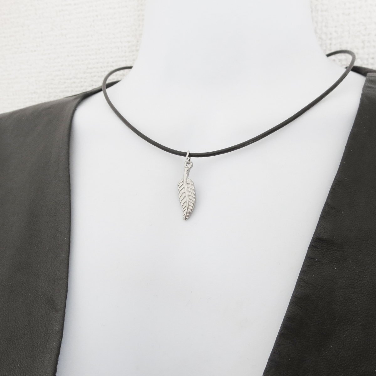 - ニリーフ 葉 レザーチョーカー ステンレスチャーム付き 45cm(40+5cmアジャスター) SNC07