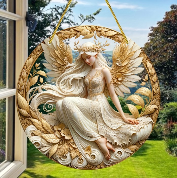 - 【妖精・天使・花】カラフル アクリルプレート 飾り サンキャッチャー 紐付き オブジェ お洒落 壁や窓辺の飾りに
