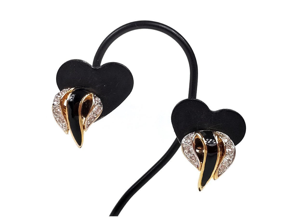 - 美品 ニナリッチ NINA RICCI ラインストーン イヤリング 縦:1.5cm ブラック×ゴールドカラー YAS-10760