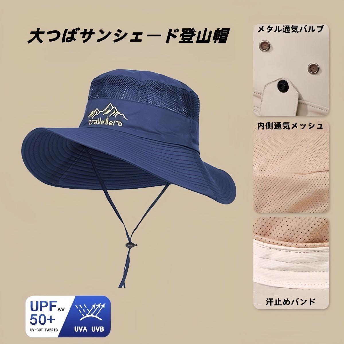 - アウトドア 大つばキャップ UVカット 帽子 メンズ レディース 登山 ハイキング サンハット 釣り ゴルフ 通気 メッシュ 吸汗 防風