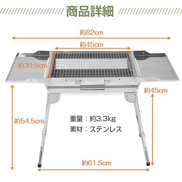 - 送料無料 バーベキュー コンロ 折りたたみ 炭 BBQ グリル 網 鉄板 ステンレス キャンプ 調味料 ラック 焼肉 サイドテーブル ロストル od605