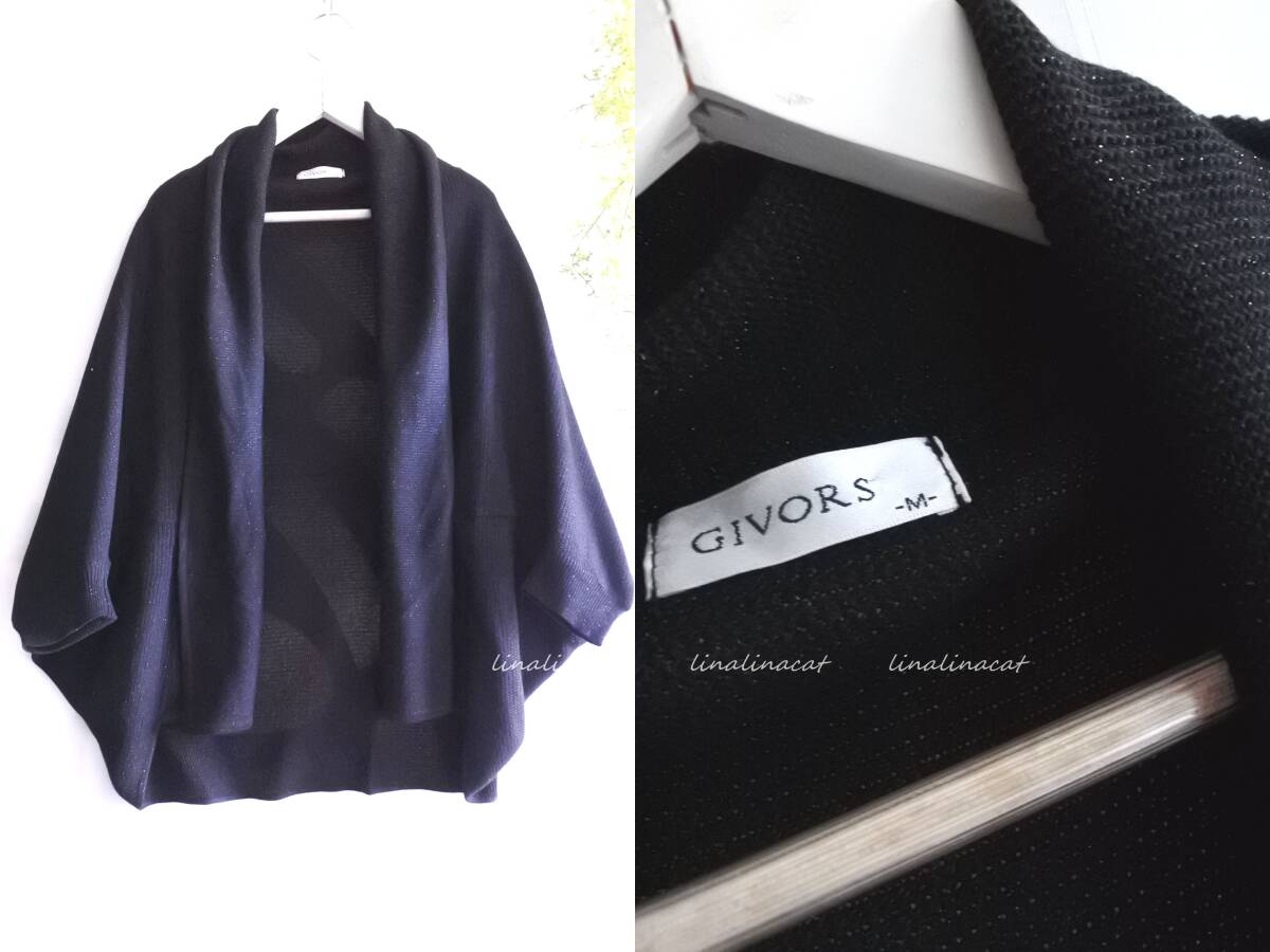 - 美品です GIVORS* 上品ラメ感 リブ 変形ドレープ ドルマン カーディガン ブラック