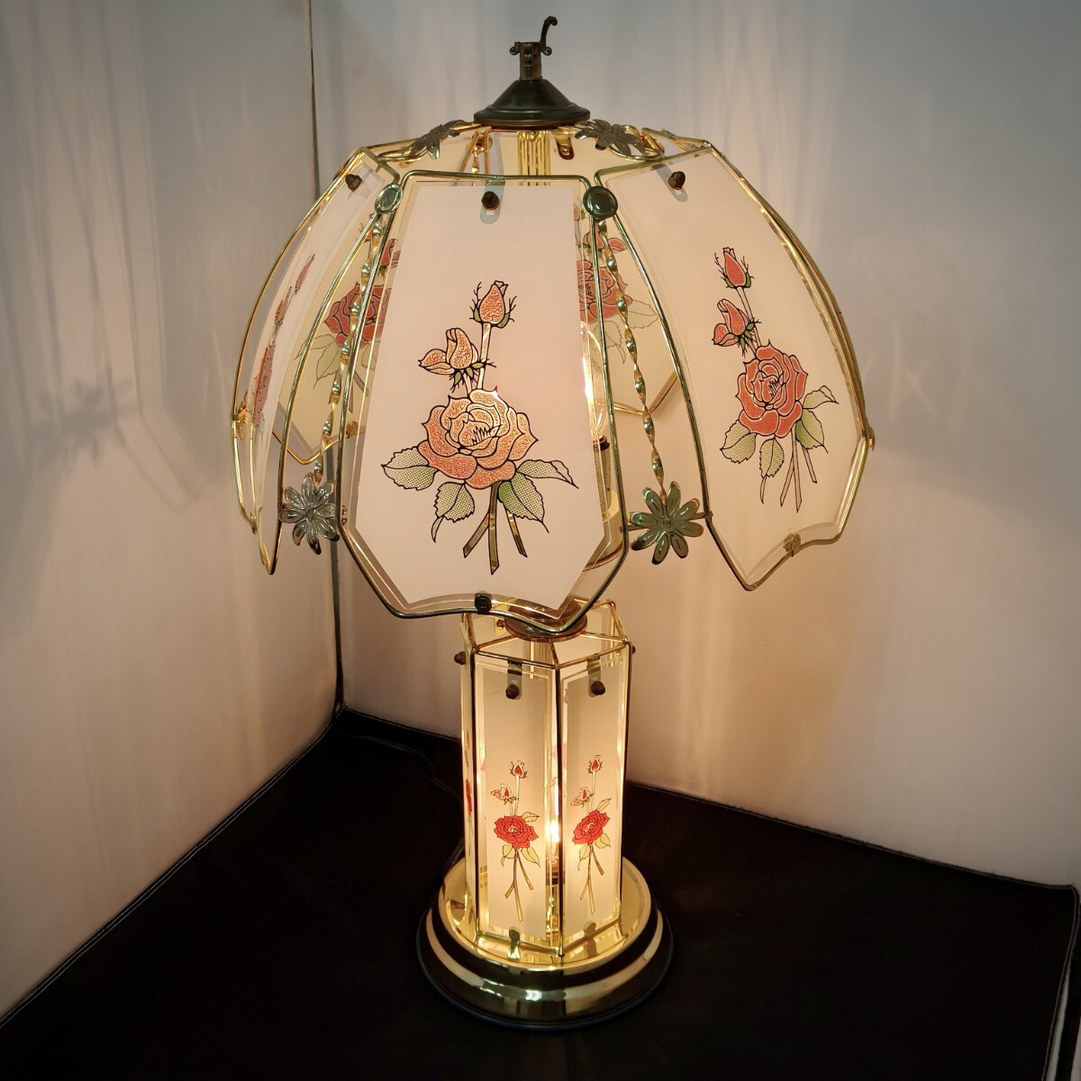 - ナイトスタンド テーブルランプ 薔薇 フロアランプ タッチセンサー アンティーク風 レトロ ガラス 花柄 ランプ (10107H