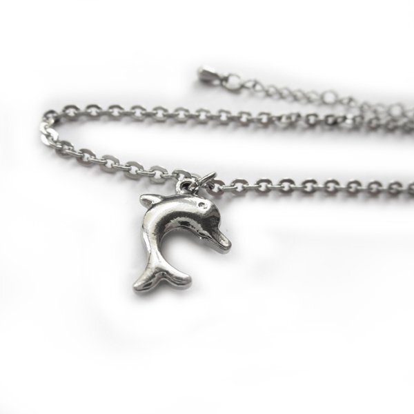 - 【大きめ】ステンレスチェーン イルカ ドルフィン アンクレット 29cm(25+4cmアジャスター) 2.4mm幅平小豆