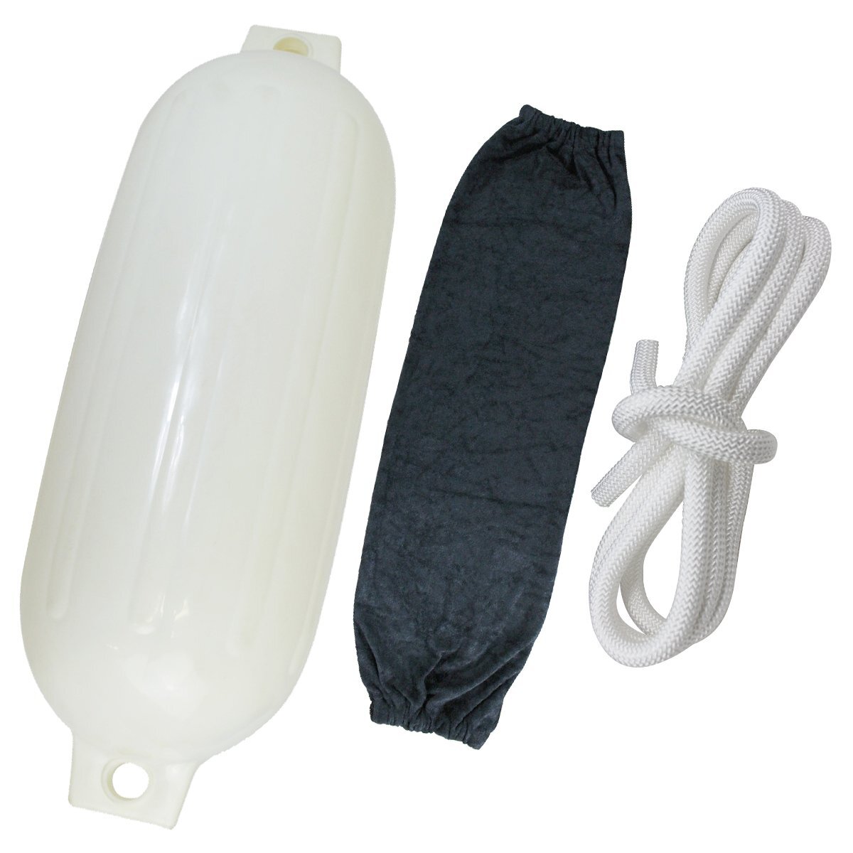 - 『3種×1セット』ボートフェンダー 580×190mm&黒カバー&ロープ 白 2m 船 浮き ブイ フロート 係留ロープ