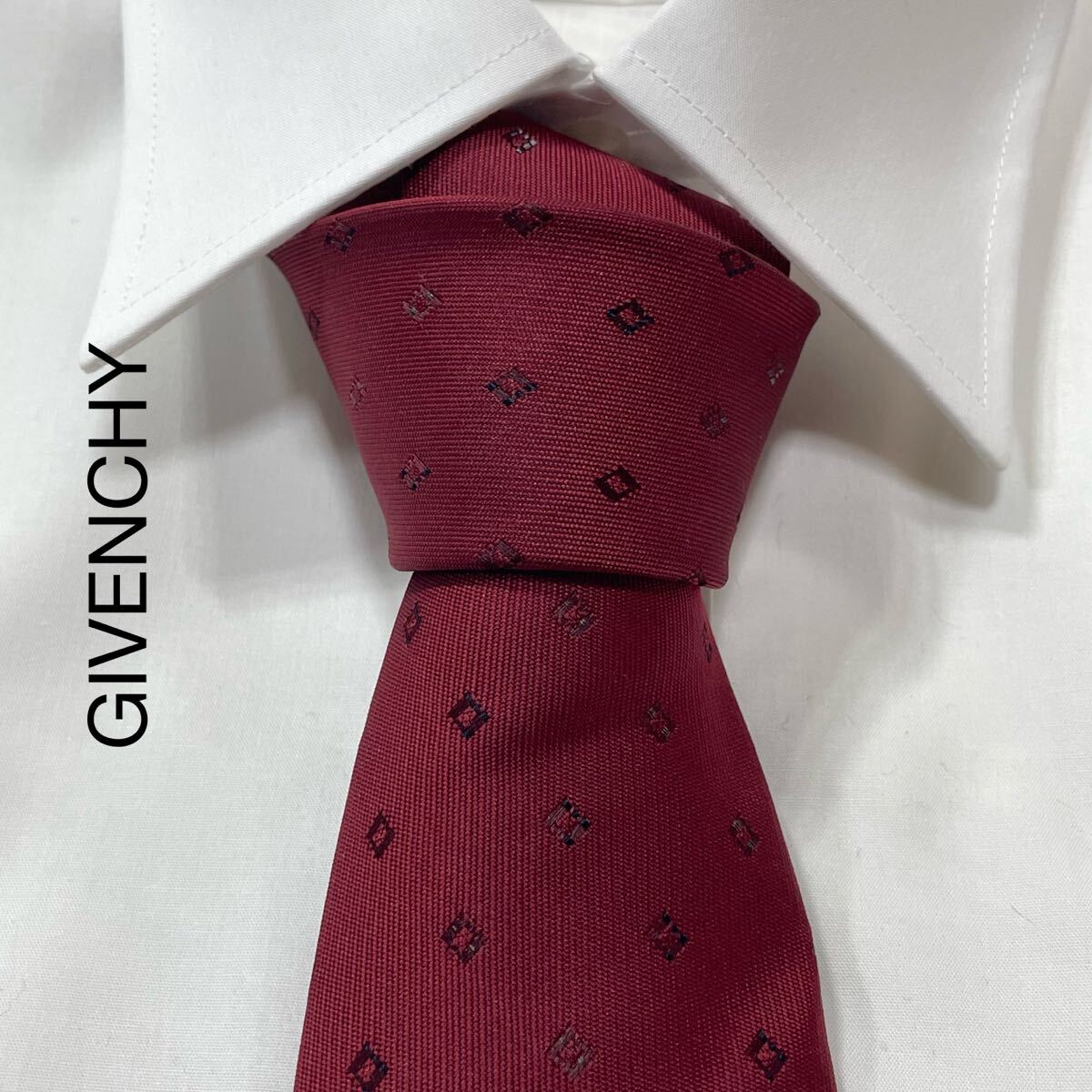 - GIVENCHY ジバンシー ロゴ パターン柄 ジャガード ポリ シルク ネクタイ ワイン TG2960