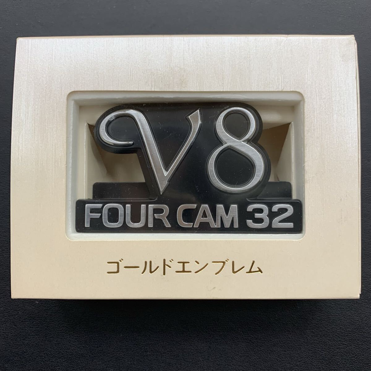 > I ☆未使用品☆ TOYOTA CROWN V8 FOUR CAM 32 ゴールド エンブレム 黒シルバー ホビー カー用品 コレクション 純正品 箱付 旧車