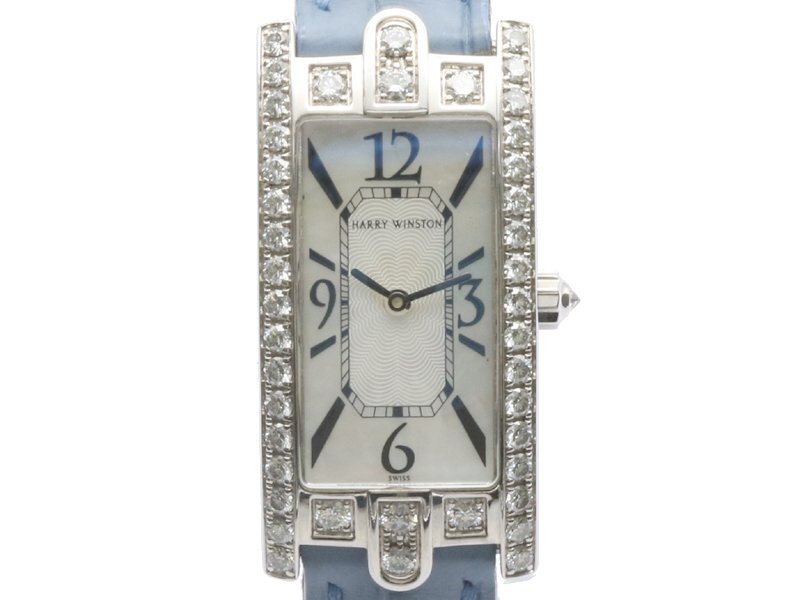 > 【 ハリーウィンストン HARRY WINSTON 】 330LQW アベニューCミニ K18WG/革 ダイヤベゼル クォ―ツ レディス 箱・保 □新着70101-1