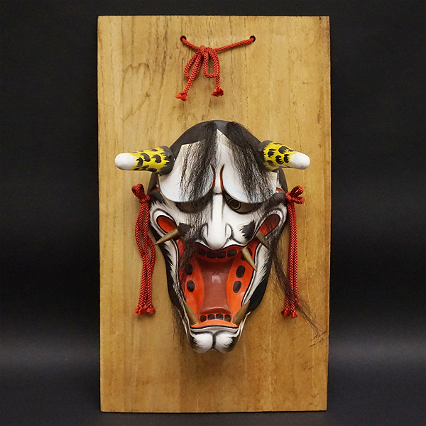 > 般若 鬼面 鬼 開運 在銘 島根県 石州和紙造 石見神楽 東洋彫刻 工芸 縁起物 壁掛け お面 厄除け 時代 骨董 オブジェ 古美術品