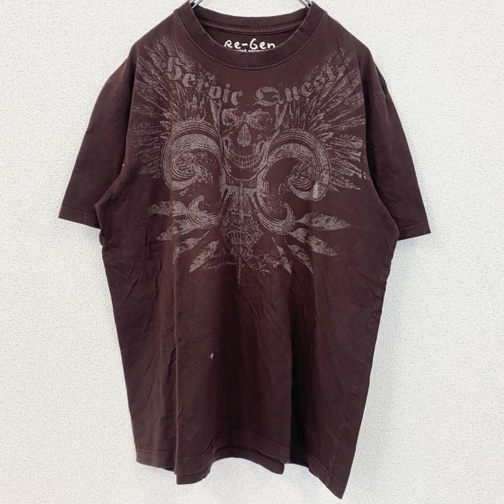 > 古着 used Re-Gen 半袖プリントTシャツ 茶 ブラウン レトロデザイン ドクロ スカル 平成 Y2K XLサイズ