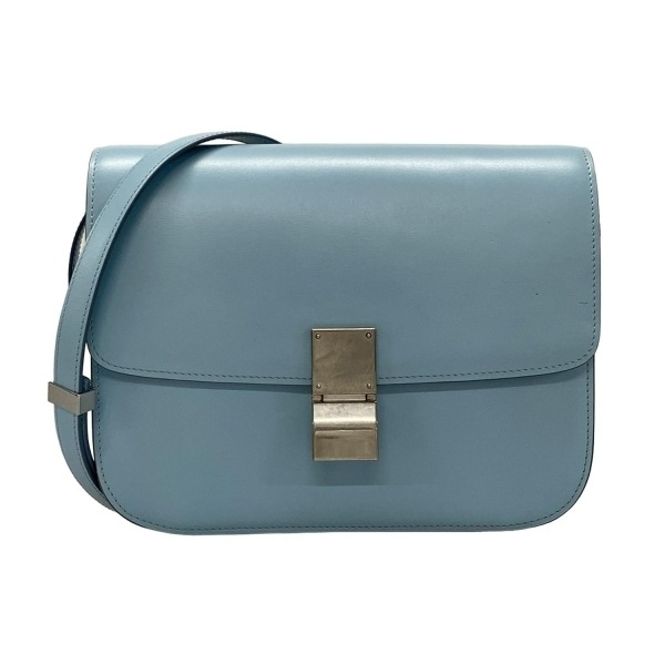 - セリーヌ CELINE ショルダーバッグ クラシック ミディアム レザー ライトブルー 「F」刻印あり 美品 バッグ