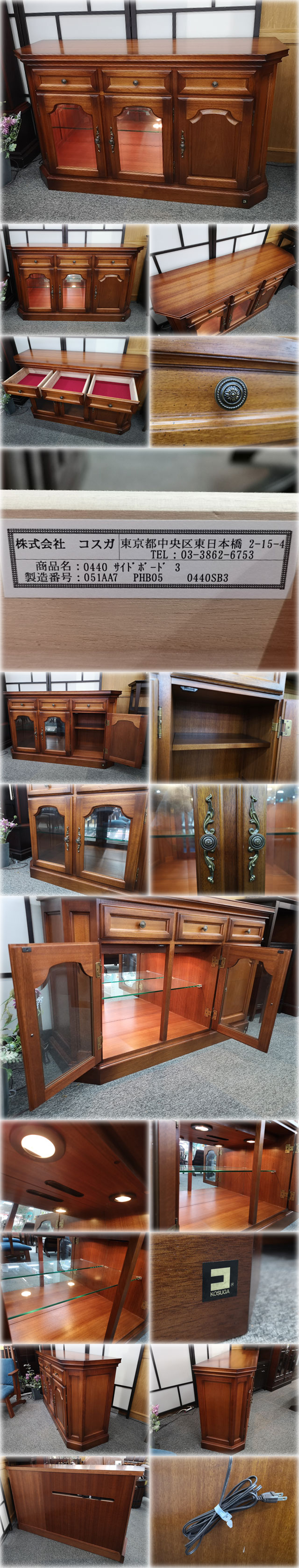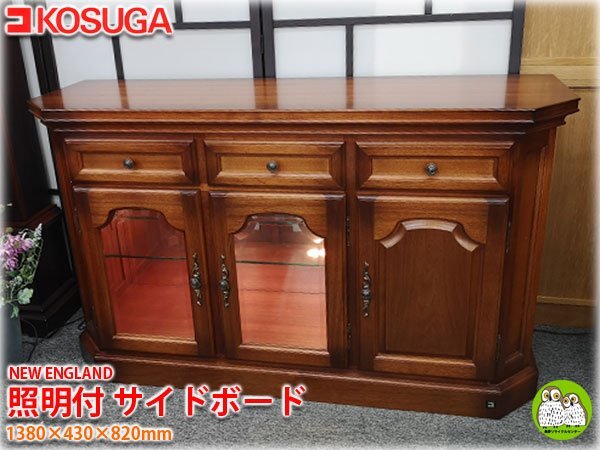 - 【美品】コスガ 照明付サイドボード ニューイングランド リージェントハウス 0440サイドボード3 1380x430x820mm 飾り棚 店頭引渡し