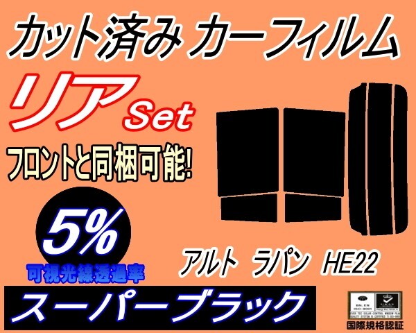 - カーフィルム スーパーブラック カット済み リアセット アルトラパン HE22 (s) スモーク ラパン HE22系 スズキ ガラスフィルム