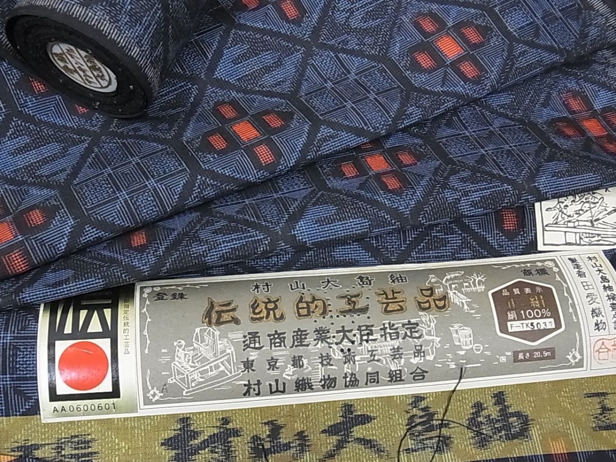 - eふれんず◆本場村山大島紬 反物 着尺 手織 花菱文 上代14万 証紙付き 正絹 未使用品 未仕立て◆bm1785
