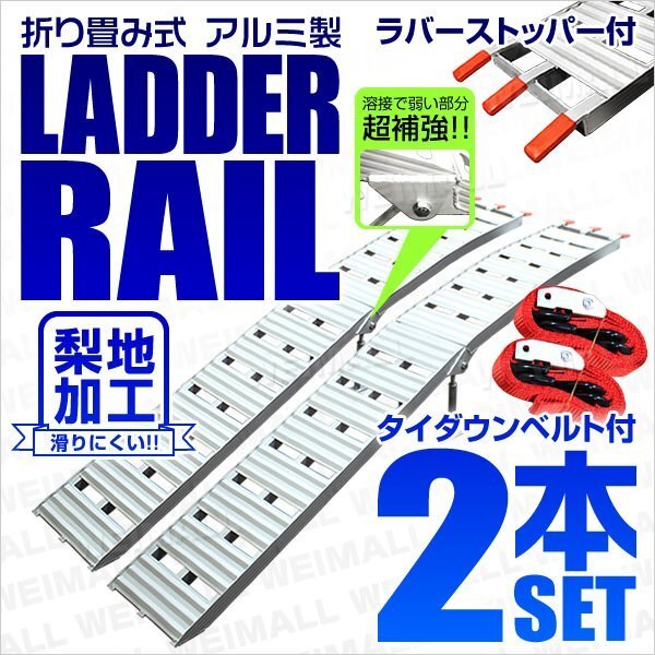 - 折り畳み式 アルミ製 ラダーレール 脚付 バイクレール アルミブリッジ 荷台スロープ バイクラダー 二つ折り Type-A 2本セット