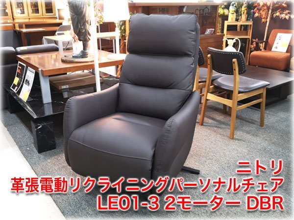 - 【2022年製】ニトリ 革張電動リクライニングパーソナルチェア LE01-3 2モーター DBR 充電用USBポート付 【長野発】