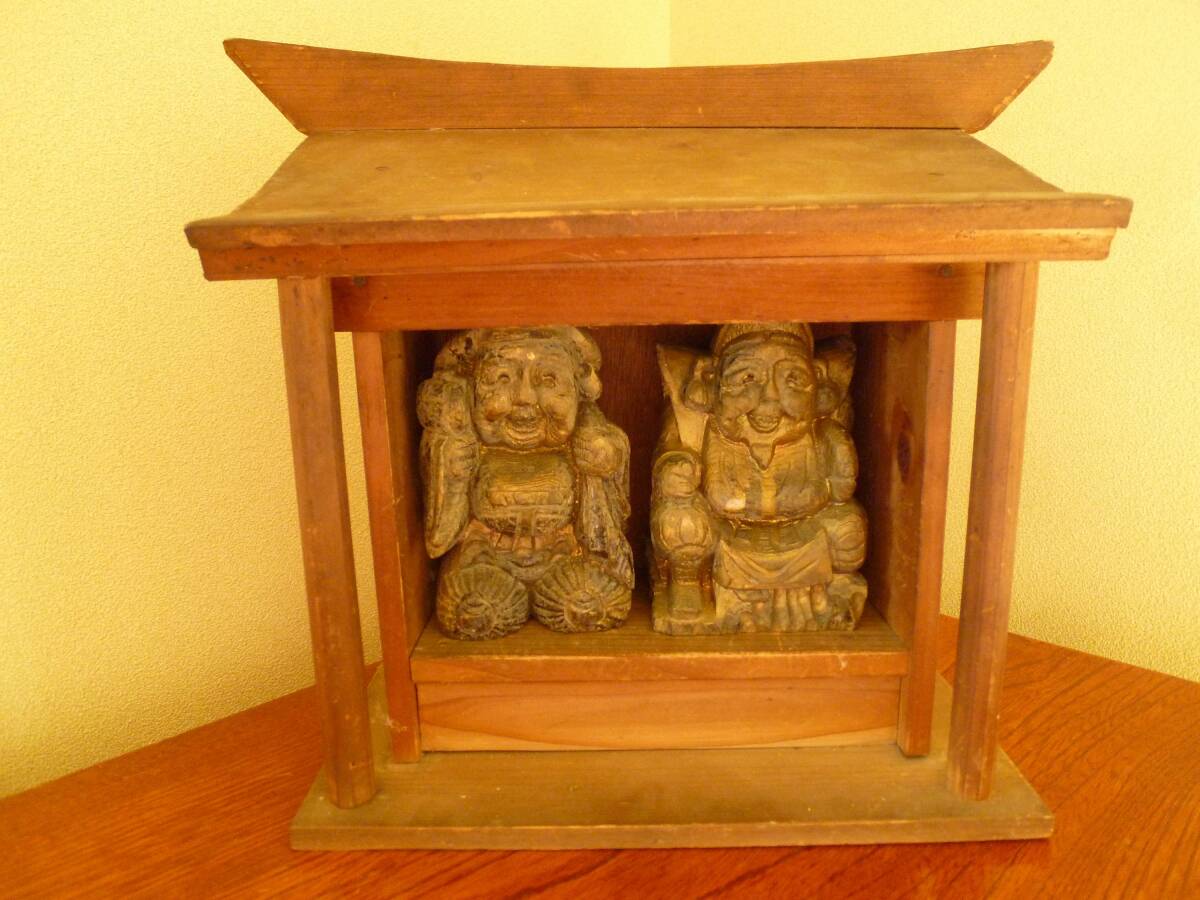 - 【即決・木彫】 恵比寿 大黒 厨子入り(幅32.5㎝) 仏 縁起物 七福神 江戸時代 時代物 仏教美術 骨董 古民芸 古道具 古物 珍品 古美術