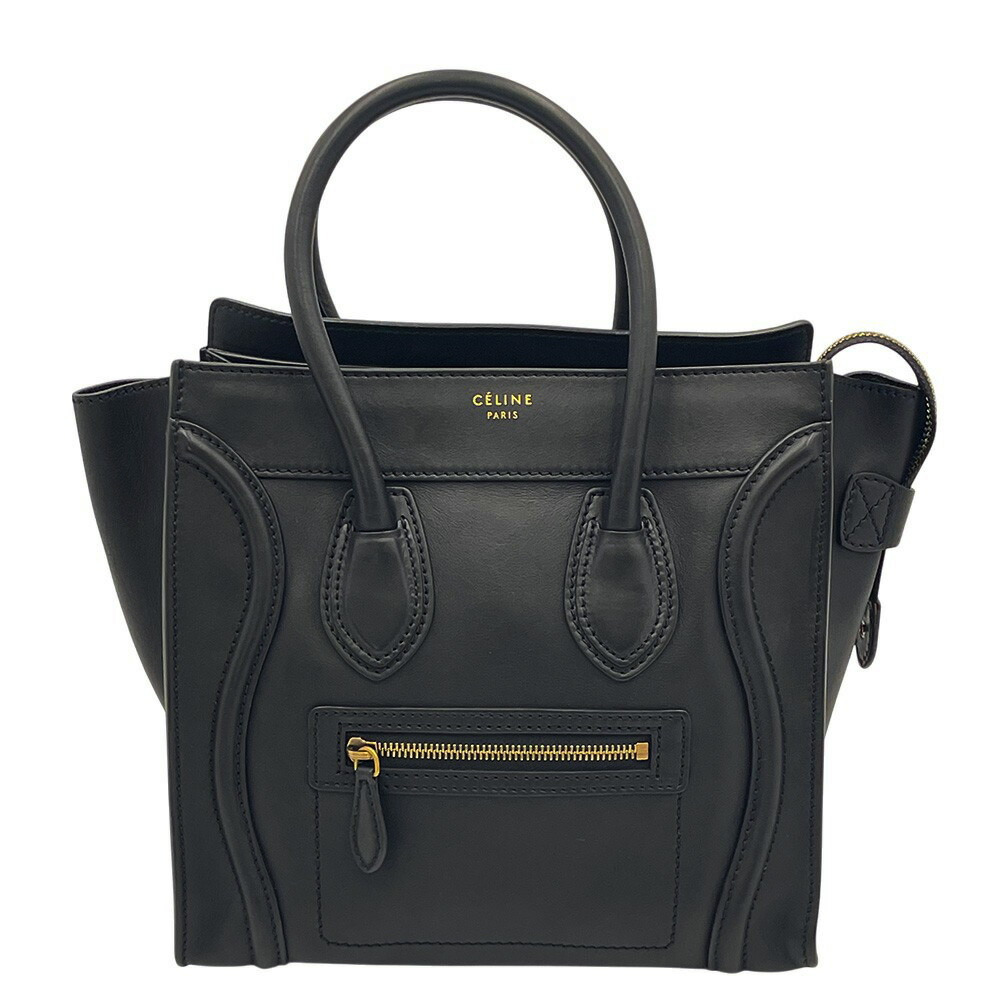 > 美品 セリーヌ ハンドバッグ CELINE バッグ 189793 ラゲージ マイクロ マイクロショッパー レザー ブラック 黒 ゴールド金具 レディース