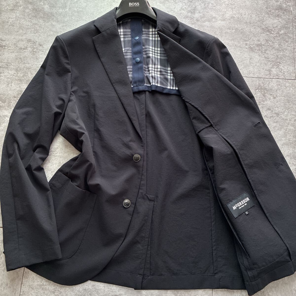 - 【美品・LL】McGREGOR マックレガー アンコンジャケット テーラードジャケット チェック裏地 ネイビー ストレッチ カジュアル メンズ 紺色