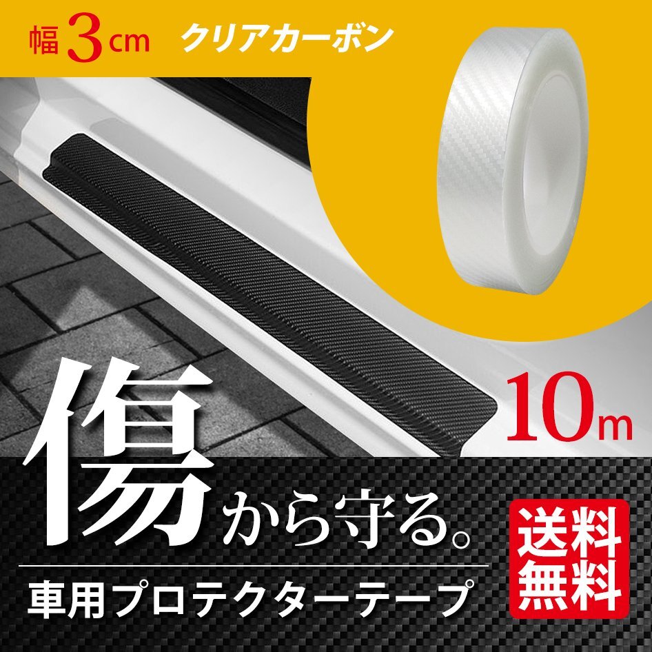 - 車用 プロテクターテープ 幅3cm 10m巻 クリア カーボン調 フィルム エッジ プロテクト ドア モール キズ防止 内装 外装 宅配便 送料無料