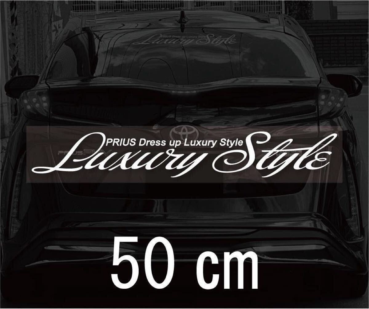 > 50㎝ プリウス ラグジュアリースタイル ドレスアップ 筆記体 カッティングステッカー 防水 耐候性 転写シール 白色 色変更可能