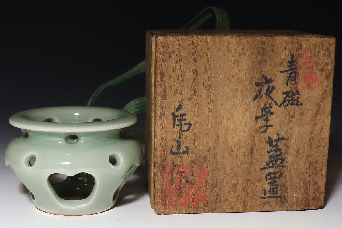 - 【桃】茶道具:三田青磁夜学蓋置 虎山