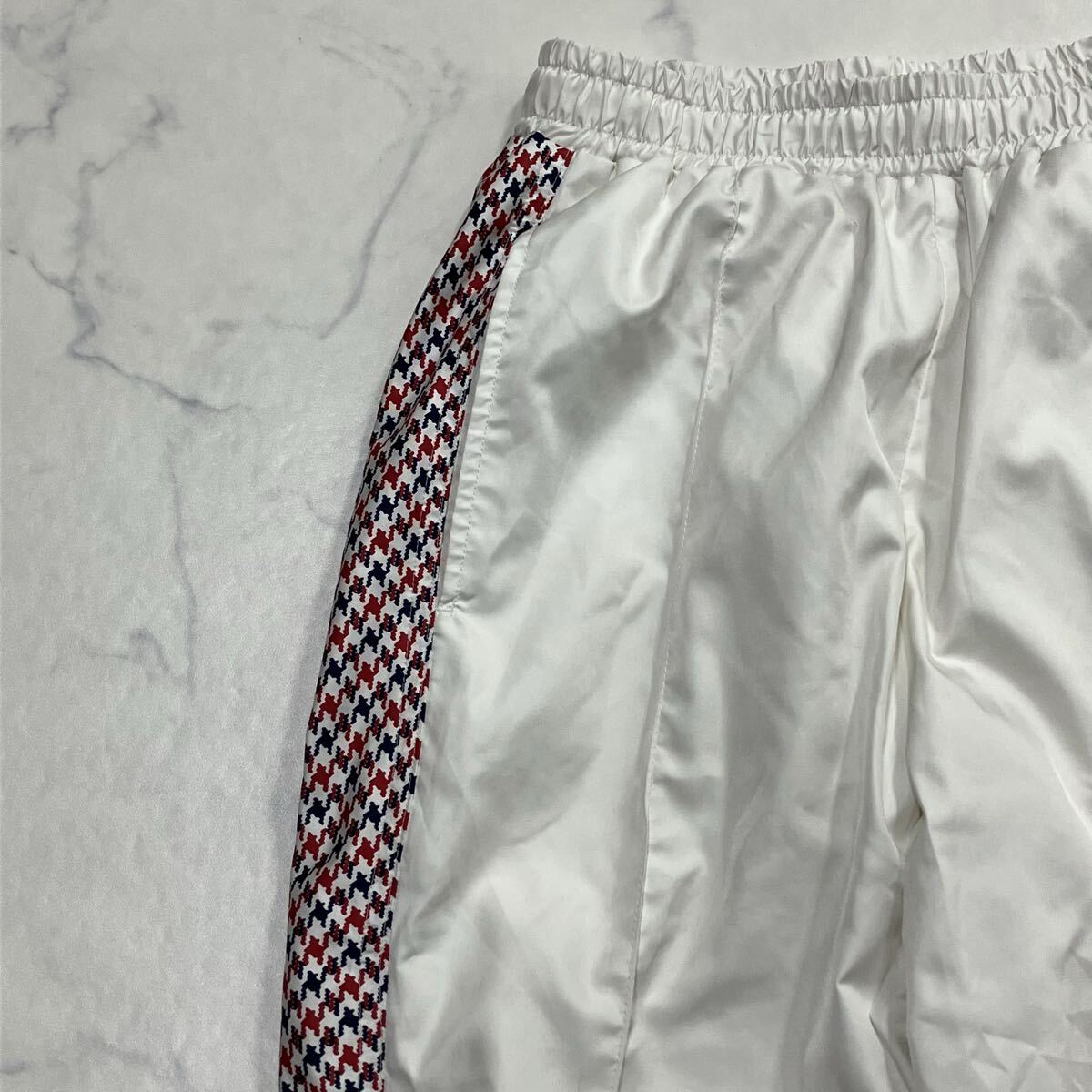 - ellesse エレッセ ヴィンテージ 切替 千鳥格子 ウエストゴム ジップ シャカシャカ パンツ ホワイト M