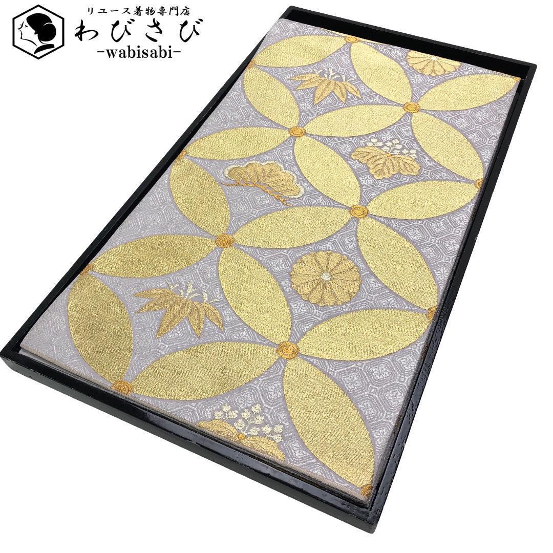 > 袋帯 西陣 聚楽 じゅらく黄金繭 七宝繋ぎ 紋柄 金糸 藤鼠色 O-5519