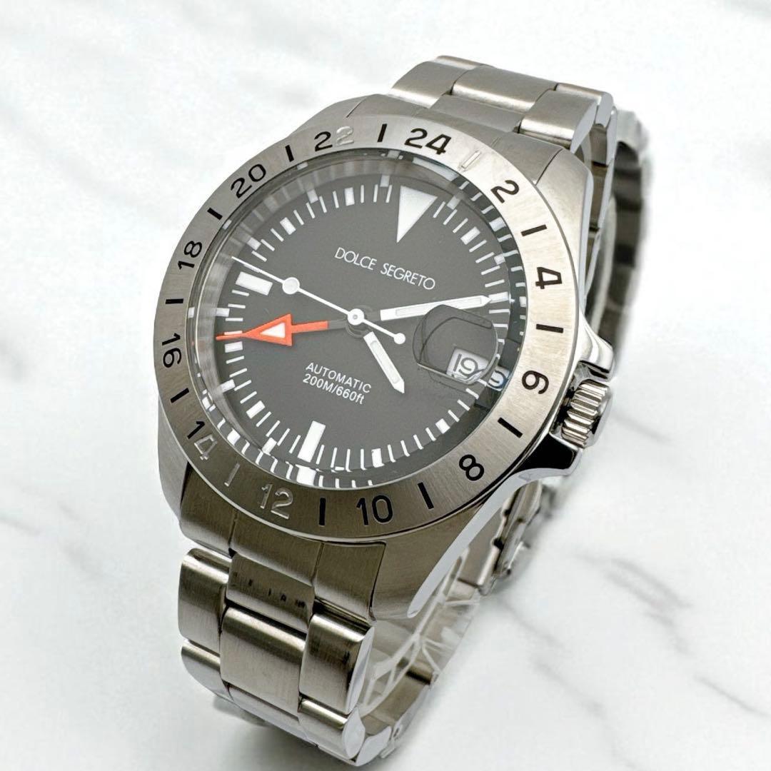 - 稼働 DOLCE SEGRETO ドルチェセグレート 自動巻き デイト ブラック文字盤 腕時計 メンズウォッチ シルバー