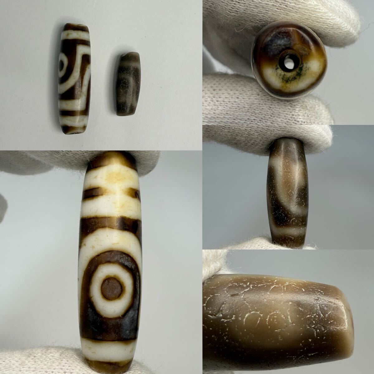 - BY-中国古美術 時代物 天珠 根付 チベット 古珠 瑪瑙 2点セット 唐物 中国古玩 骨董品