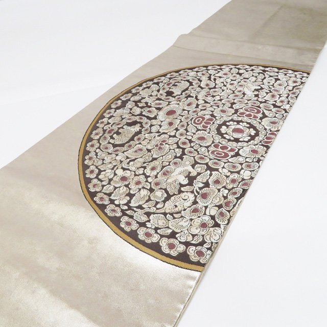 - ★きもの北條★ 鏡裏文様 動物文様 引箔 仕立て上がり 中古 正絹 袋帯 T804-16