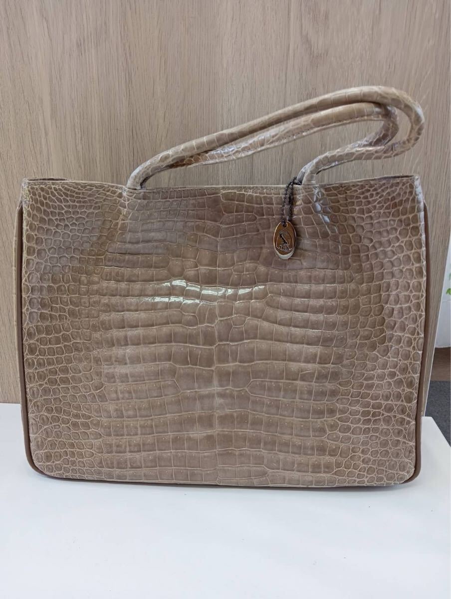 - 【中古品】JRA認定 クロコ レザー トートバッグ ハンドバッグ 茶ブラウン 肩掛け 手提げ バッグかばん 現状品