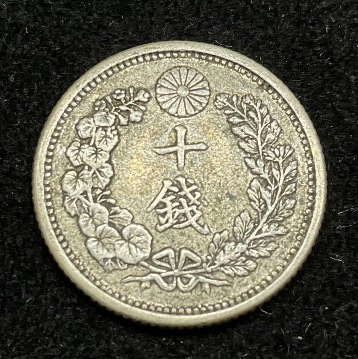 - S9 竜10銭銀貨 明治32年 特年 日本古銭 古銭 硬貨 銀貨 竜 重さ2.7g
