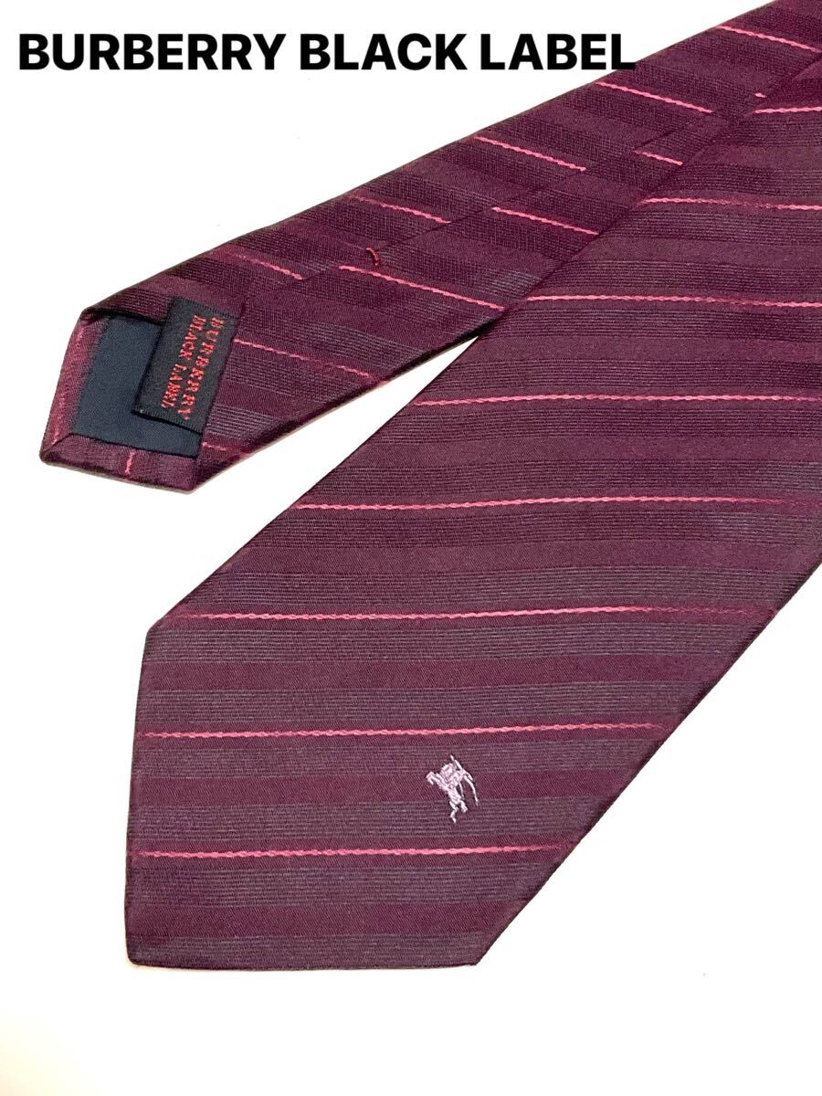 > BURBERRY BLACK LABEL バーバリーブラックレーベル ネクタイ ボルドー系 ストライプ レジメンタル 馬上の騎士 ホースマーク 送料185円〜