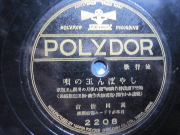 - ポリドール流行歌SP盤33★高田浩吉/しゃぼん玉の唄・島の流れ唄★美麗盤★SPレコード